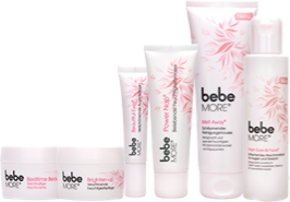 Mit sechs neuen Produkten bietet die Gesichtsreinigungs- und Pflegeserie bebe MORE® das Mehr für selbstbewusste junge Frauen, die sich zu erwachsen für Teenie-Produkte fühlen, aber noch zu jung für Anti-Age Pflege. bebe MORE® - das Mehr für deine Haut.